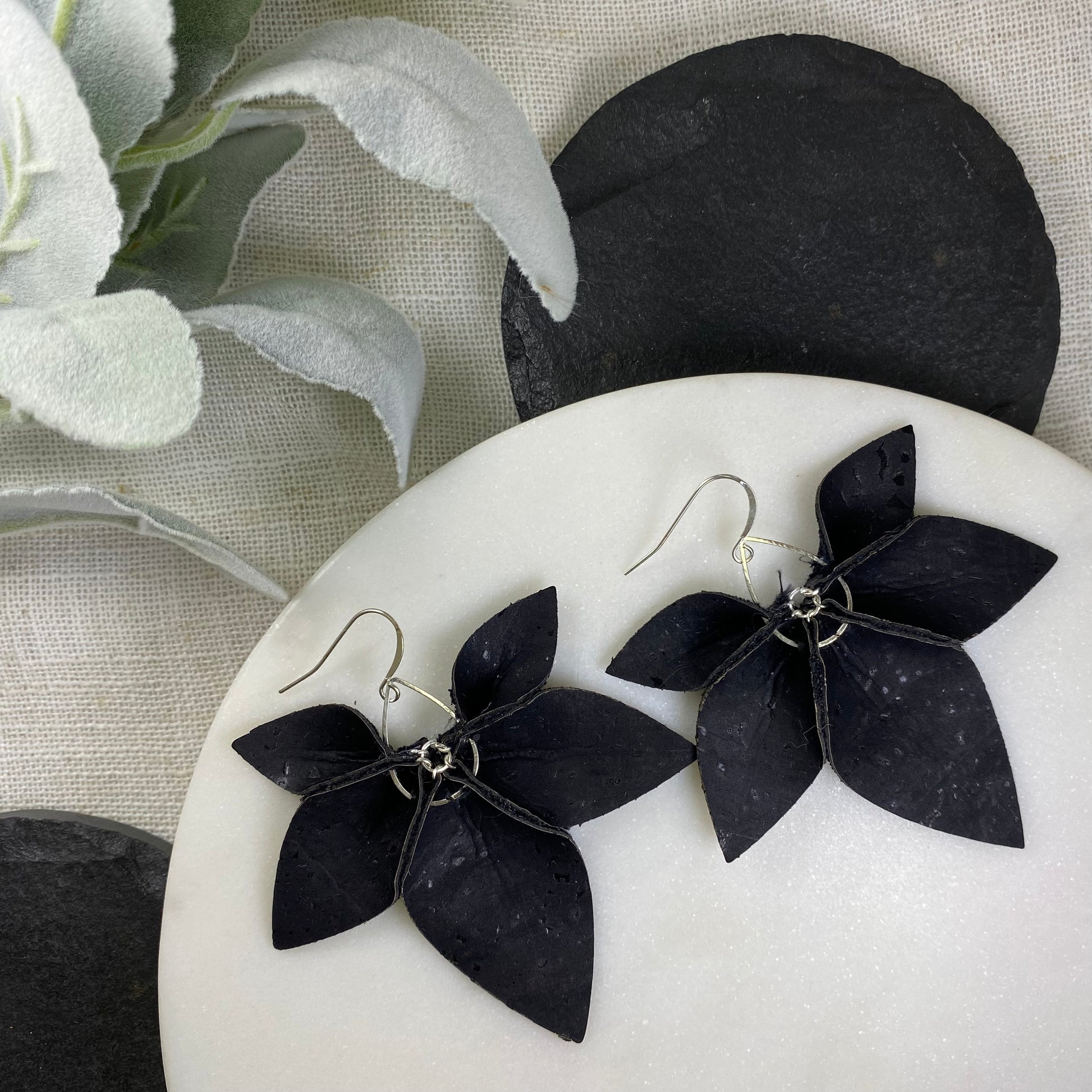 Matte Black Cork Flower Earrings - Sustainable & Bold Elegance
